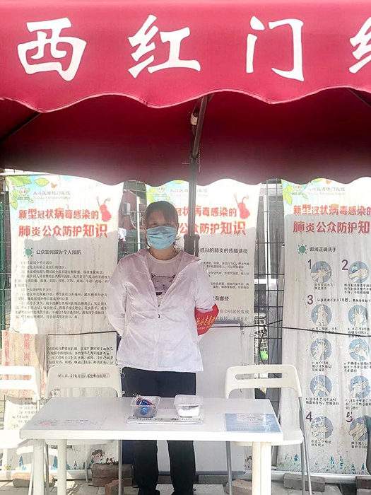 有時候也會碰到發(fā)牢騷的:大熱天還要戴口罩……,出去進來怎么老得測體溫……,每當這個時候,我都會笑著迎上去,盡力安撫他們急躁的情緒,看到我的耐心,他們也慢慢平復下來,配合我的工作。