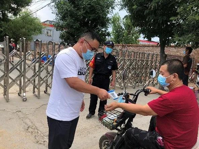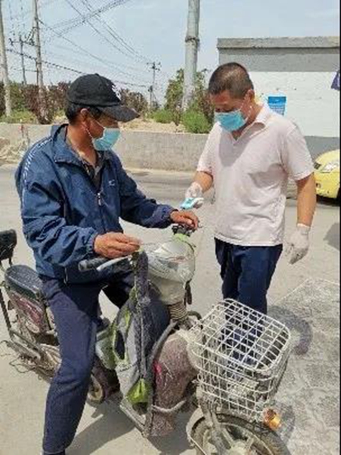西紅門地區(qū)是這場(chǎng)戰(zhàn)“疫”的中心,我們嚴(yán)格把關(guān),對(duì)出入村的居民和車輛進(jìn)行個(gè)人有效身份證件或單位復(fù)工證明登記。同時(shí),做好快遞包裹消毒處理、張貼宣傳單和通知等各項(xiàng)防疫工作。我們對(duì)每一位進(jìn)出人員測(cè)溫、查證。經(jīng)常會(huì)遇到健康寶信息不全,而不能正常出入的人員,我就會(huì)現(xiàn)場(chǎng)指導(dǎo)他們進(jìn)行完善,看到他們信息完善后如釋重負(fù)的樣子,我也感受到了自己的付出得到了回報(bào)。