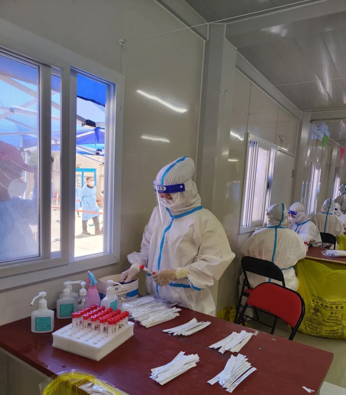 每天早上6點半,我到達廣泰華庭社區(qū)防疫籌備辦公室,開始準(zhǔn)備一天的核酸檢測物資,在盤點分裝好防護裝備和核酸試劑、咽拭子簽等準(zhǔn)備工作后,開始布置核酸檢測現(xiàn)場場地,將隔離帶布置好后核酸檢測工作正式開始,引導(dǎo)居民有序排隊,提醒大家戴好口罩,保持安全距離,解答居民提出的問題。