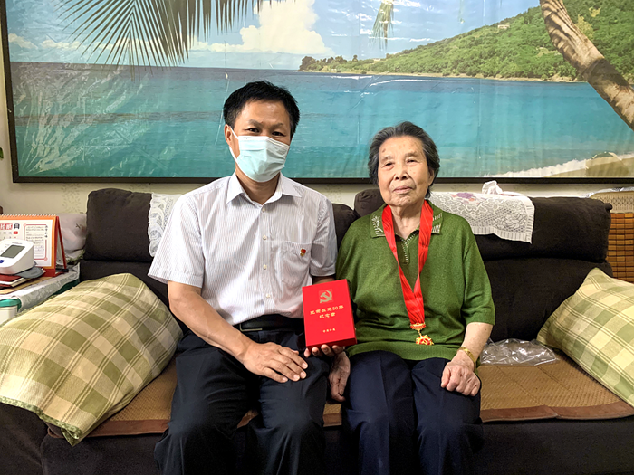 7月1日下午,在中國共產黨成立101周年之際,受北京化工集團黨委委托,黨委副書記吳瑞峰帶隊來到離休干部孫華云家中,向她頒發(fā)“光榮在黨50年”紀念章。孫華云同志今年已91歲高齡,1946年9月1日參加工作,1972年7月1日入黨,是集團原合纖廠工會干部。