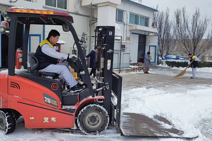 為保障職工上下班安全,華騰橡塑加強鏟冰除雪運行調(diào)度,確保道路保持暢通,職工交通安全。12月15日上午,公司各科室人員對廠區(qū)道路積雪進行了清除。大家不畏寒冷,紛紛拿起鐵鍬、掃帚等工具,清理道路。經(jīng)過1個多小時的努力,疏通了從廠門到辦公樓、車間、食堂的幾條關(guān)鍵道路。