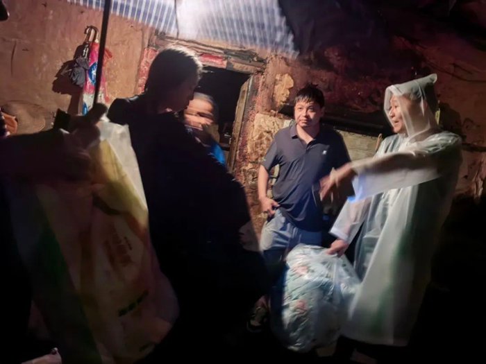 汛情就是命令。面對突如其來的洪水,本就日夜堅(jiān)守在村委會的李東,與村委委員一起連夜趟著洪水,去多戶村民家中查看水位和房屋漏雨情況,在冒雨拉網(wǎng)式檢查中,李東和村委委員先后將2戶有安全隱患房屋內(nèi)的6名村民,連夜轉(zhuǎn)移至村委會臨時安置點(diǎn)。當(dāng)大家要喘口氣歇歇腳兒時,28日凌晨3時許得到消息,位于村口的小商店出現(xiàn)險情,60多歲的老兩口被困店內(nèi)。接到消息,李東和村委委員緊急出發(fā)。由于洪水流速非???,他們小心翼翼地扶著墻體前行。在到達(dá)商店后,此時洪水已經(jīng)淹沒房屋門檻灌入店內(nèi)。面對緊急情況,李東和村委會干部們?nèi)饩缺焕Ю先?。李東在前面小心探路,另外兩人護(hù)住老人,在大雨中最終將兩位老人撤離到安全地帶。