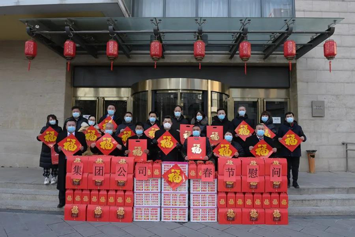 瑞雪報春曉,?;⑺图?。1月31日農(nóng)歷除夕,踏著悄然而至的春雪,北京化工集團黨委書記、董事長王國華,黨委副書記、工會主席吳瑞峰,總經(jīng)理助理李泳專程來到華騰美居酒店,向32名服務(wù)保障冬奧會的一線員工和其他留京過年、堅守崗位的職工送上新春的祝福,并祝全集團干部職工,特別是過節(jié)期間堅守一線、留京過年的干部職工虎年吉祥、新春快樂!