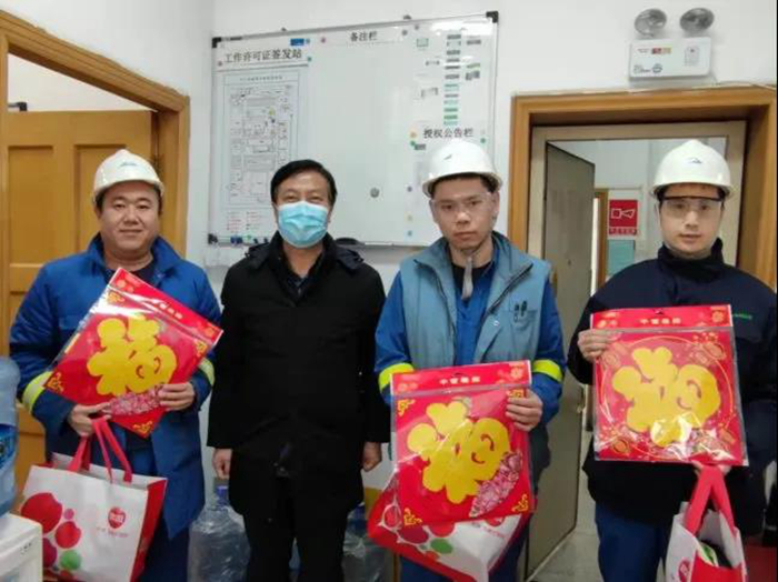 春節(jié)前,北普公司黨委副書記田東專門慰問了49名留京過年的員工,北普公司黨委特別為49名留京過年人員定制了年夜飯,并送上了公司黨委的新春祝福和慰問品。