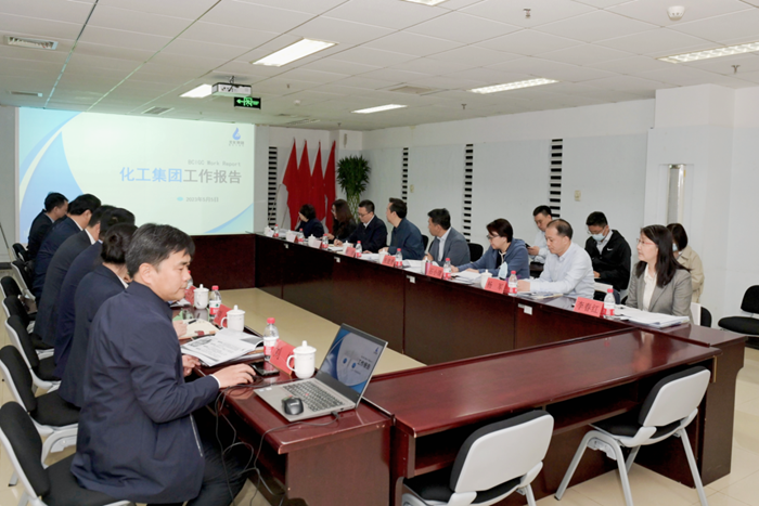在接下來召開的調(diào)研座談會(huì)上,曾勁一行聽取了北京化工集團(tuán)的工作匯報(bào)。