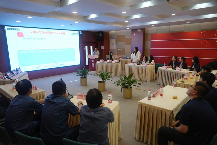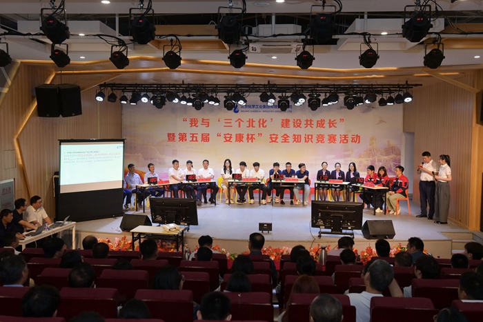 今年的活動主題是“人人講安全,個個會應(yīng)急—查找身邊安全隱患”,又恰逢集團(tuán)黨委提出“三個北化”建設(shè)整滿一年時間,為此,集團(tuán)及各二級單位周密安排了一系列安全教育活動,其中,第五屆“安康杯”安全知識競賽是今年安全生產(chǎn)月系列活動的重頭戲。為進(jìn)一步提升競賽質(zhì)量,確保競賽更加公平高效,競賽內(nèi)容覆蓋安全、環(huán)保、職業(yè)健康等多領(lǐng)域知識,競賽題目首次采用抽題軟件隨機(jī)抽取產(chǎn)生;決賽環(huán)節(jié)還首次設(shè)置了針對各級領(lǐng)導(dǎo)作答的“責(zé)任題”,以及面向全體觀眾的互動答題。