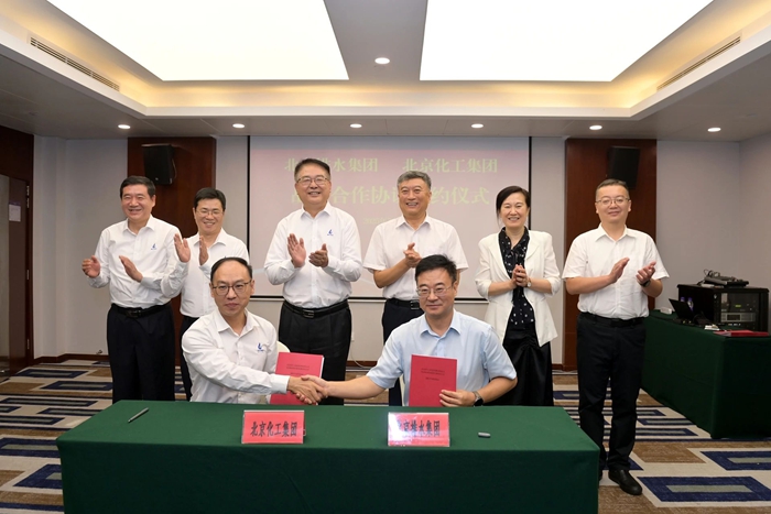 7月15日,北京化工集團(tuán)與北京排水集團(tuán)簽署戰(zhàn)略合作協(xié)議。化工集團(tuán)黨委書(shū)記、董事長(zhǎng)陳宇,黨委副書(shū)記、董事、總經(jīng)理?xiàng)钚褫x,黨委常委、副總經(jīng)理孫紹剛,副總經(jīng)理張榮寰;排水集團(tuán)黨委書(shū)記、董事長(zhǎng)張建新,黨委副書(shū)記、職工董事、工會(huì)主席王蘭,黨委委員、副總經(jīng)理張志淵出席簽約儀式。