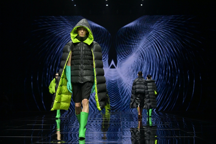 整個秀場,靚麗前衛(wèi)的膠靴或踏于足下,或成為時尚新品挎于體側(cè),伴著強勁的樂曲,綻放出化工科技在時尚前沿的另類美學(xué)。