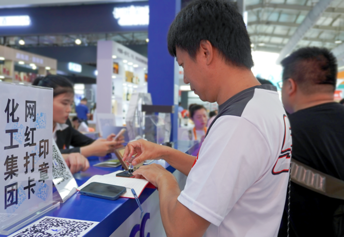 網(wǎng)紅打卡印章,是此次參展的又一亮點(diǎn),集團(tuán)為此專門制作了有集團(tuán)名稱樓宇的印章。“4號(hào)館,北化集團(tuán),3免(3個(gè)印章、免費(fèi))”的服貿(mào)會(huì)攻略已在“小紅書”上傳開,人們紛至沓來(lái),在關(guān)注集團(tuán)微信公眾號(hào)后,將“北京化工集團(tuán)”印在自己的本上,讓北京化工在潛移默化中傳播。