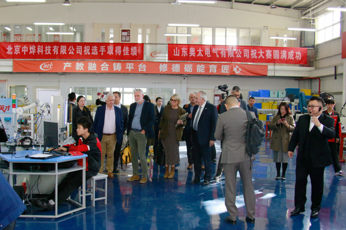 按照精心設(shè)計的接待路線,英國職業(yè)技能訪問團(tuán)一行先后來到學(xué)院數(shù)控車間、數(shù)控世賽基地、文物修復(fù)實訓(xùn)室等多個教學(xué)場所參觀。