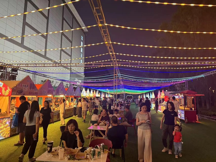 自夜市開(kāi)啟以來(lái),經(jīng)濟(jì)效益持續(xù)向好。華騰新天地商場(chǎng)客流量同比大幅增長(zhǎng),親子家庭消費(fèi)占比超過(guò) 60%。夜市中的市集匯聚了美食、潮玩等幾十家商戶,周末更有精彩的節(jié)目演出,現(xiàn)場(chǎng)人氣高漲,成為勁松地區(qū)打卡的熱門地標(biāo)。